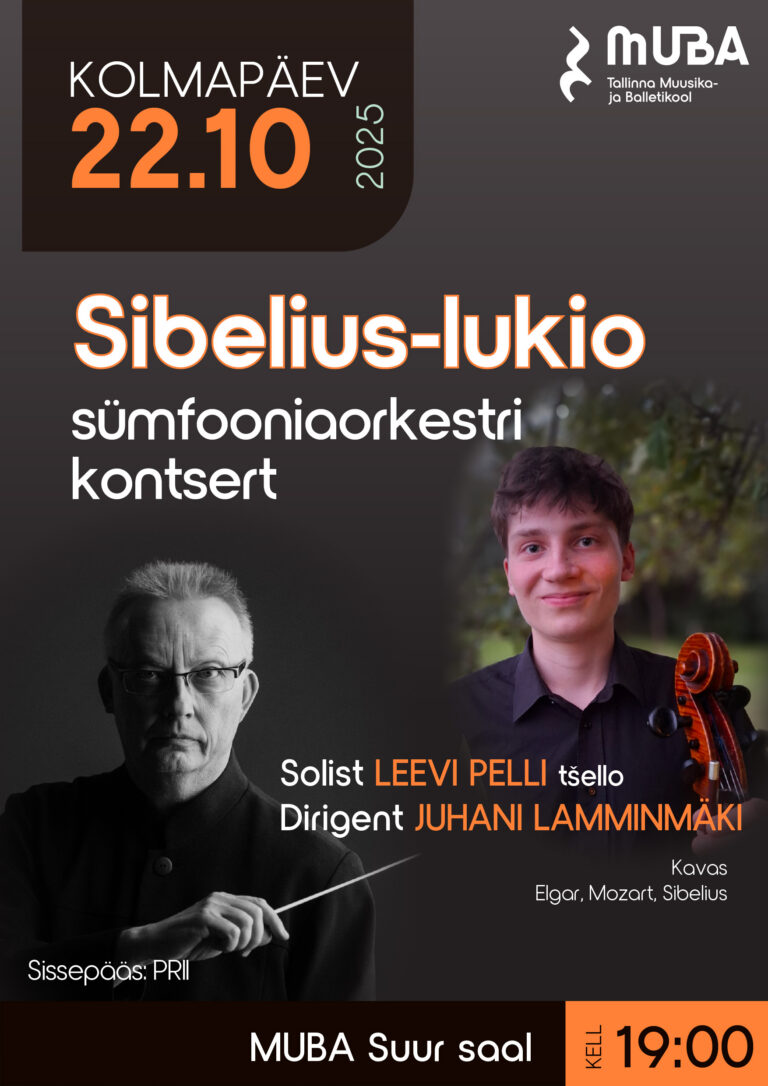 Sügise rõõmuks esineb MUBA Suures saalis Sibelius-lukio sümfooniaorkester, mis on ainus täismõõdus koolis tegutsev sümfooniaorkester Soomes. Seda noortest andekatest muusikutest koosnevat orkestrit juhatab Juhani Lamminmäki. Orkestri ees soleerib tšellist Leevi Pelli.