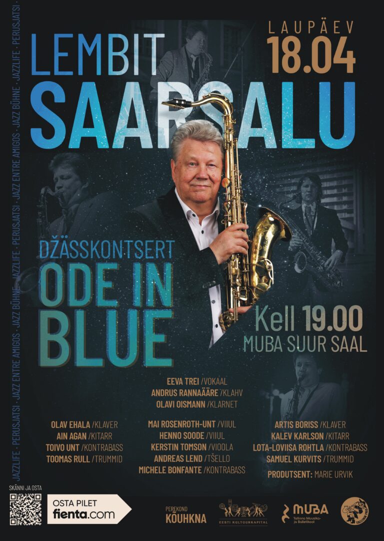 Suurejooneline Lembit Saarsalu džässkontsert “Ode In Blue” 18. aprillil algusega kell 19:00 Tallinna Muusika- ja Balletikooli suures saalis.