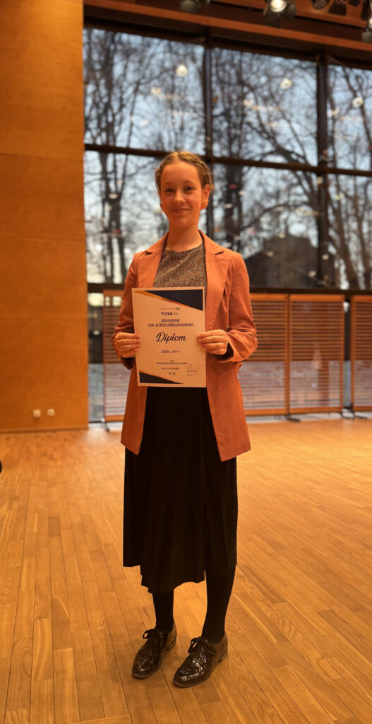 Diplom – Johanna Rüütelmaa (metsasarv, 3. kursus), õpetaja Kalle Koppel / kontsertmeister Tiiu Maasing
