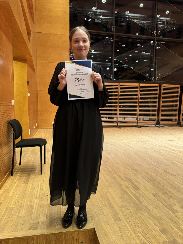Diplom – Zana Paalberg (klarnet, 3. kursus), õpetaja Vello Sakkos / kontsertmeister Tiiu Maasing