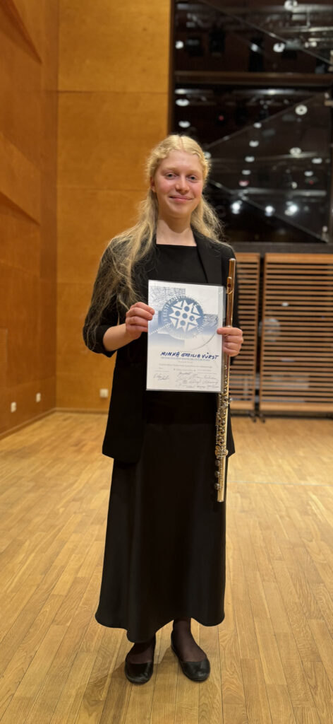 Diplom – Margarita Meister (flööt, 11. klass), õpetaja Mari-Liis Vind / kontsertmeister Helen Põldmäe